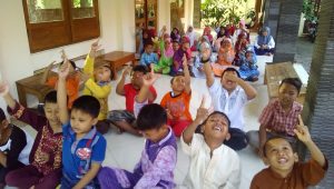 Beliau melanjutkan, “…anak-anak di sini tidak pernah kami marahi. Namanya juga anak-anak. Mereka ramai itu biasa. Saat sholat mereka lebih senang masuk masjid begitu iqomat sudah selesai. Mereka memenuhi shof-shof belakang. Rame… jelas, tapi biasanya setelah kelas 5 atau 6 SD mereka sudah mereda. Tidak pernah kami marahi. Itu menjadi sebab anak-anak betah di masjid.”